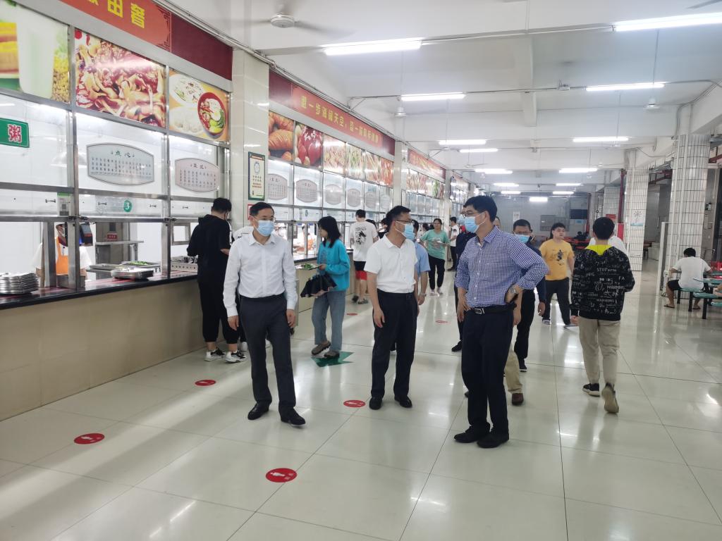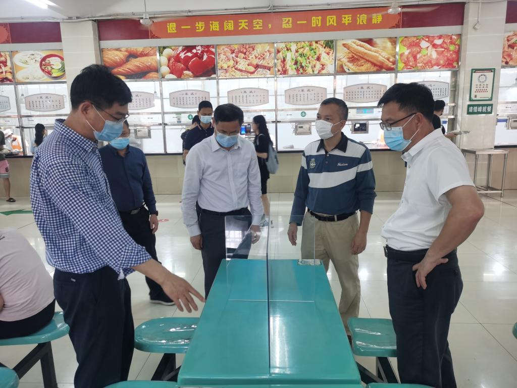 谢冠华在检查中要求各食堂要严格按照学校疫情防控工作指引,强化人员就餐指引,避免人员扎堆聚集,加强防控过程监管,做到人、物、环境同防,要求在就餐人数较多的食堂餐桌上安装隔离板,扎实推进食堂疫情防控和食品安全工作落实。