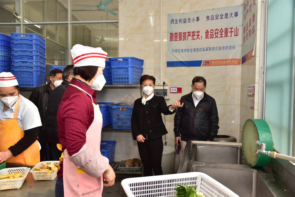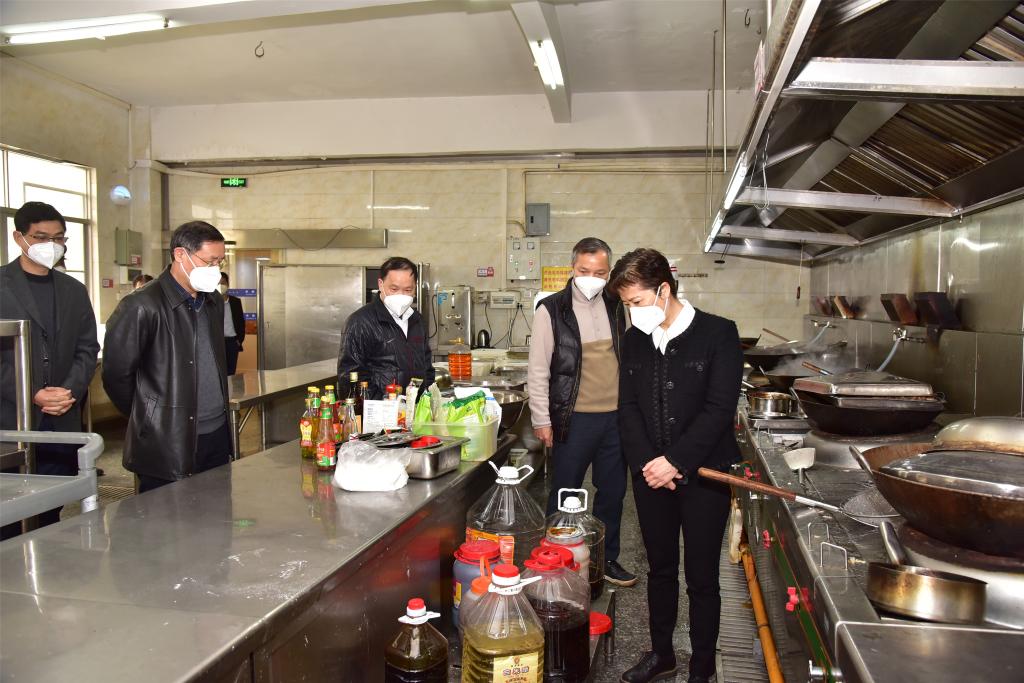 何婧一行深入教工餐厅厨房和食品原材料加工现场,对照落实食品安全“两个责任”清单,对必赢565net官网落实食品安全责任制、食品原材料采购、食品添加剂管理、原材料储存与加工、食品安全总监及安全管理员配备、从业人员食品安全知识培训,市、区市场监督管理局工作开展等情况进行检查、督导,逐一开展督导,并详细检查了等环节。